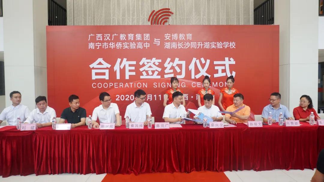 2020年,学校与广西汉广教育集团合作办学,引进湖南同升湖优质教育品牌,借鉴湖南一流高中品牌、先进的课程教研系统和优秀精英人才,稳步实现“强强联手”、“资源共享”的办学优势,以优质师资带动优质教学,致力于培养面向世界、面向未来的优秀人才。