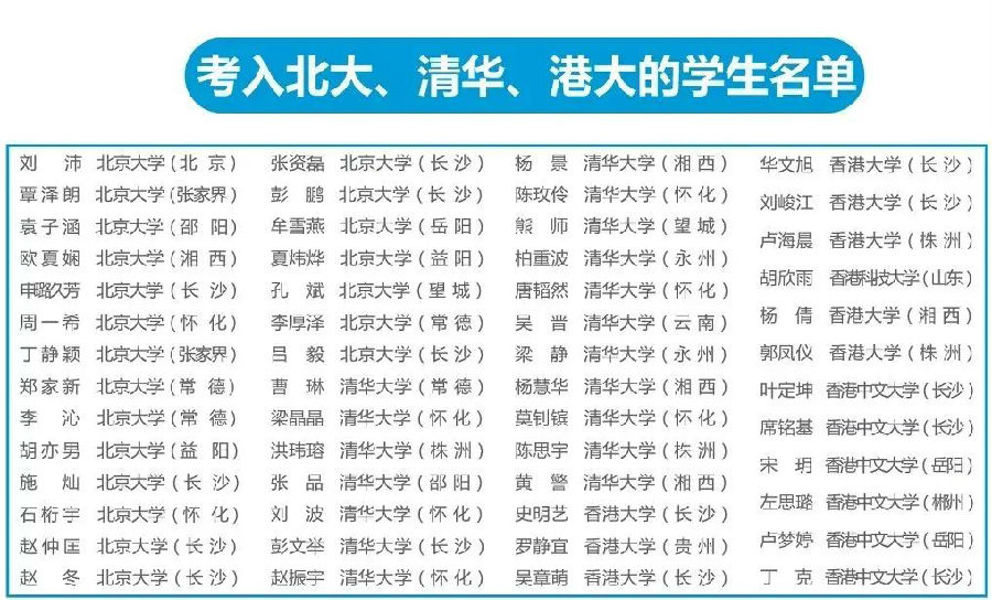 湖南长沙同升湖实验学校建校以来,培养了多名省市高考状元,大批学生被国内一流名校录取,百余人被世界百强名校录取,为社会各领域培养了大批知名人士、成功人士。