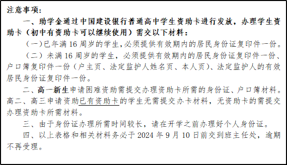 (六)市级学生资助管理部门通过银行将普通高中国家助学金发放到受助学生的高中资助卡中。